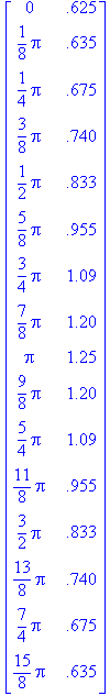 Р е ш е н и е. Составим таблицу значений функции, разбив интервал [0; 2π], начиная от φ = 0 до φ = 2π и придавая φ значения через промежуток π/8.