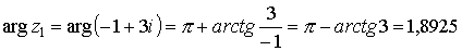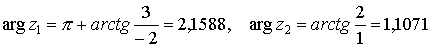 arg (z1·z2) = arg z1 + arg z2 = 2,1588 + 1,1071 = 3,2659.