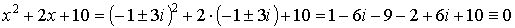 Решить квадратное уравнение x2 + 2 x + 10 = 0, проверить подстановкой корни, показать расположение корней на координатной плоскости, найди модуль и аргументы корней.