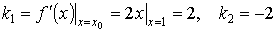 поэтому тангенс угла пересечения в точке х = 1 равен