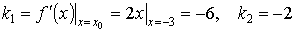 и тангенс угла пересечения в точке х = - 3 найдём соотношением