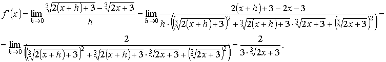 если он существует. Для данной функции нахождение производной сводится к нахождению предела вида
