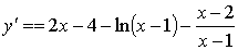 Исследовать поведение функции y = x2 − 4·x − (x − 2)·ln (x − 1) в окрестности точки x0 = 2 с помощью производных высших порядков.