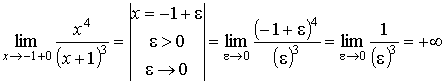 (− 1, + ∞). Вычислим левый и правый предел функции в точке х = − 1: