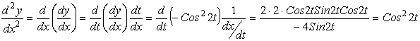 Вычислим вторую производную функции, заданной параметрически,