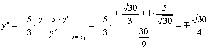 Найдём вторую производную неявно заданной функции в точках М1,2