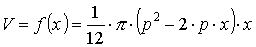 определённой на интервале 0 ≤ x ≤ p/2. На концах интервала объём принимает нулевое значение. Вычислив производную