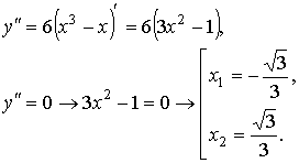 Вычислим вторую производную и найдем точки, где она обращается в нуль: