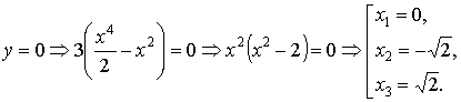 и имеет точки экстремума х = 1; х = − 1; х = 2. Все три точки экстремума принадлежат рассматриваемому интервалу, и поэтому необходимо вычислить значения функции при всех этих трёх значениях аргумента