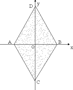 Укажите уравнения сторон ромба с диагоналями АВ = 8 и CD = 10; AB лежит на оси обсцисс, CD — на оси ординат, точка пересечения диагоналей совпадает с началом координат. ![]() |