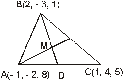 | Найдите координаты центра тяжести М треугольника с вершинами А(- 1, - 2, 8), В(2, - 3, 1), С(1, 4, 5). |