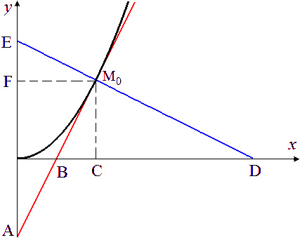 | Найти длину касательной графика функции y = x2 в точке М ( 1, 1 ). |