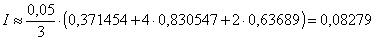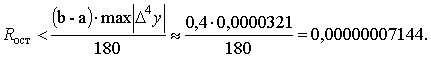 Δ I ≤ (b - a)·max | Δ 4 y | < 0,4·0,0000321 = 0,00001286 < 0,00005.