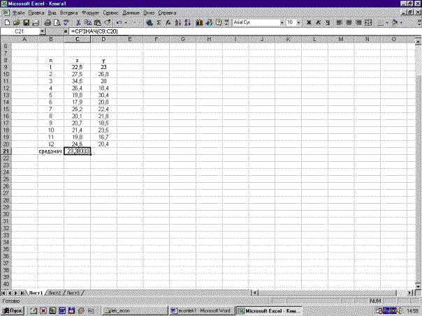 рис. 1- a) отметить ячейку для подсчёта среднего арифметического;