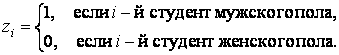 Однако полученное уравнение не учитывает влияние качественного признака – фактора «пол». Для её учёта введём в регрессионную модель фиктивную (бинарную) переменную Z: