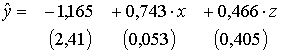- в) оценить значимость общего уравнения множественной регрессии по F-критерию и значимость его коэффициентов по t-критерию на уровне α = 0,05;