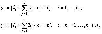 В критерии (тесте) Г. Чоу эти трудности в существенной степени преодолеваются. По каждой выборке строятся две регрессионные модели: