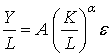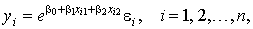 , (9)В качестве примера использования линеаризирующего преобразования регрессии рассмотрим производственную функцию Кобба-Дугласа
