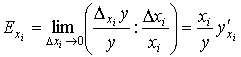Коэффициентом частной эластичности Ехi(у) функции y = f(x1, x2,..., хn) относительно переменной xi(i = 1,2,...,n) называется предел отношения относительного частного приращения функции к относительному приращению этой переменной при Δхi ® 0, т.е.