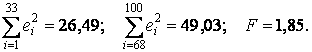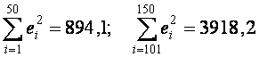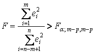 В этом случае гипотеза о гомоскедастичности будет равносильна тому, что значения е1,..., еm и еn-m+1,..., еn (т. е. остатки ei регрессии первых и последних m наблюдений) представляют собой выборочные наблюдения нормально распределенных случайных величин, имеющих одинаковые дисперсии.