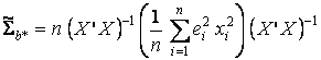 Однако, даже если с помощью взвешенного метода наименьших квадратов не удается устранить гетероскедастичность, ковариационная матрица Σb* оценок параметров регрессии β все же может быть состоятельна оценена (напомним, что именно несостоятельность стандартной оценки дисперсий и ковариаций β является наиболее неприятным последствием гетероскедастичности, в результате которого оказываются недостоверными результаты тестирования основных гипотез). Соответствующая оценка имеет вид:
