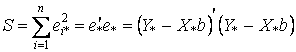 Применяя обычный метод наименьших квадратов, неизвестные параметры регрессионной модели находим, минимизируя остаточную сумму квадратов