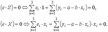 π. В силу этого имеем е ⊥ Х и е ⊥ S.Из признака перпендикулярности векторов (вектора перпендикулярны, если их скалярное произведение равно нулю) имеем уже известные уравнения системы (2.3):