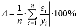 | n | х | у | х2 | x·y | ŷ | ei | A |