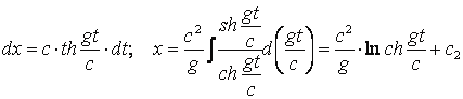 В силу начальных условий для скорости имеем С 1 = 0. Так что,