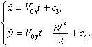 - Проинтегрировать систему дифференциальных уравнений движения. Использовав начальные условия движения, определить постоянные интегрирования.