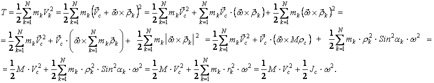 Кинетическая энергия системы равна сумме кинетических энергий центра масс, при условии сосредоточения массы всей системы в этой точке, и кинетической энергии системы при движении её вокруг центра масс.