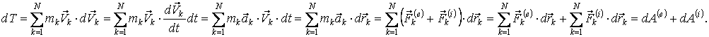Теорема 1. Дифференциал кинетической энергии системы равен элементарной работе всех сил системы.