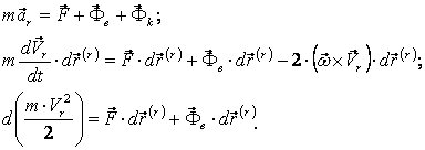 Теорема об изменении кинетической энергии в относительном движении точки выражается так же, как и в абсолютном движении, только к элементарной работе приложенной силы добавляют элементарную работу силы инерции переносного движения на относительном перемещении