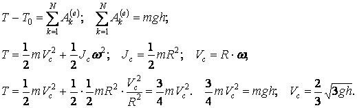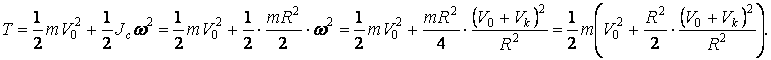 Пример 1. Найти кинетическую энергию однородного диска, катящегося без скольжения по горизонтальной плоскости со скоростью V0.