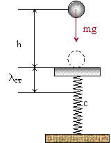 Пример 3. Тело массы m падает без начальной скорости с высоты h. Найти наибольшее сжатие λ пружины, если