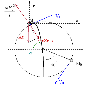 - 2) Так как натяжение нити в точке М1 равно нулю, то