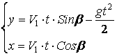 Закон движения тела, брошенного под углом β к горизонту, имеет вид