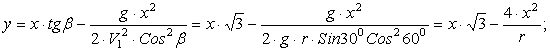 Так как β = 90° - α = 60°, то уравнение траектории примет вид