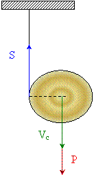 П р и м е р 5. Однородный цилиндр весом Р и радиусом R падает вниз без начальной скорости, разматывая нить. Определить скорость оси цилиндра в зависимости от высоты его опускания (Маятник Максвелла).