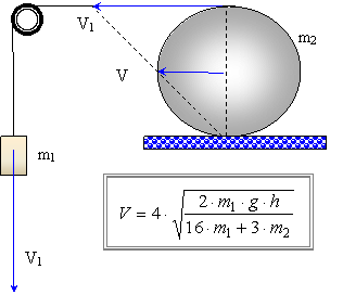 П р и м е р 6. Найти скорость груза массы m1, после того как он опустится на h из состояния покоя.