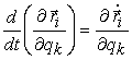 Пусть обобщёнными независимыми координатами механической системы являются q1, q2, …, qn, и координаты всех точек механической системы определяются через эти обобщённые координаты