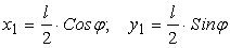 Координаты центра тяжести первого стержня