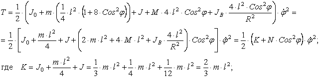 Кинетическая энергия системы имеет вид