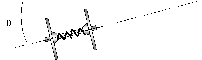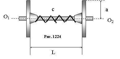 П р и м е р 2. Система, состоящая из двух одинаковых колёс радиуса а, могущих независимо вращаться вокруг общей нормальной к ним оси О1О2 длиной L, катится по горизонтальной плоскости. Колёса связаны пружиной с жёсткостью с, работающей на кручение.