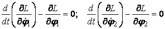 Уравнения движения, получаемые из уравнений Лагранжа, имеют вид
