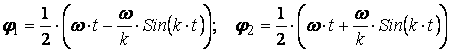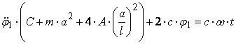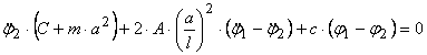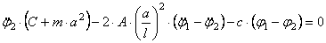 . Если проинтегрировать это уравнение с учётом начальных условий, то получим φ1 = - φ2 + ω·t. Исключая одну переменную с помощью этого соотношения, получим линейное неоднородное дифференциальное уравнение второго