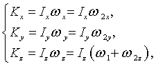 Для гироскопов ω1 >> ω2 и Кz >> Кx, Кz >> Кy. Имея в виду это обстоятельство, в элементарной теории гироскопов главный момент количеств движения тела (кинетический момент) относительно неподвижной точки принимают равным