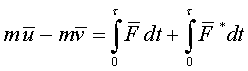 Пусть на материальную точку массой m действует ударная сила F и конечная сила F *. Время действия ударной силы обозначим τ скорость точки в начале удара v, в конце удара u. Тогда по теореме об изменении количества движения материальной точки