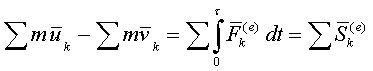 где Q – количество движения системы, Sk(e) – внешний ударный импульс.