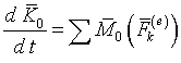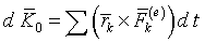 где K0 = Σ (rk × mkvk) – кинетический момент системы относительно неподвижной точки О, Σ M0 (Fk(e)) = Σ (rk × Fk(e)) – главный момент внешних сил, действующих на систему, относительно той же точки О.